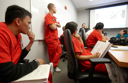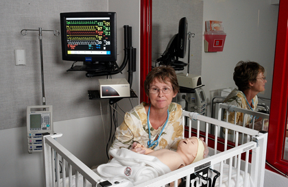 Using high-tech mannequins, nursing students take vital signs and practice professional communication, team management, task performance and decisionmaking.