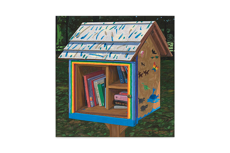 Free Library, 2024, Acrylic gouache on panel, 36 x 35 inches