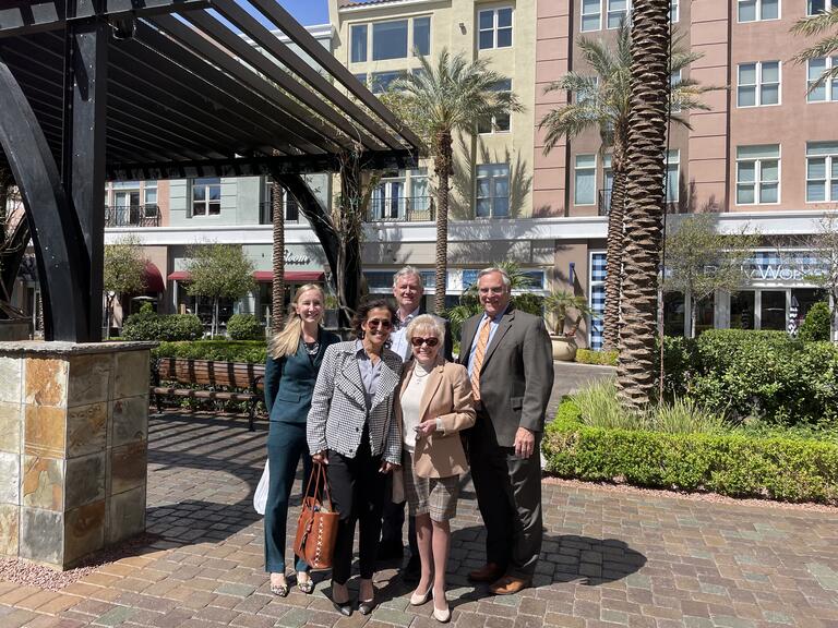 From left to right: Kim Nehls, Interim Assistant Dean for External Relations; Anjala Krishen, Department Chair and Professor of Marketing; Marilyn Larson, John Osborn, former Assistant Dean for External Relations, and Gerry Sanders, Dean of Lee Business School.