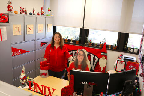 If there's a UNLV logo on it, School of Medicine admissions coordinator Alyssa Hill owns it. And if it doesn't come with a logo on it, she'll paint it on herself.