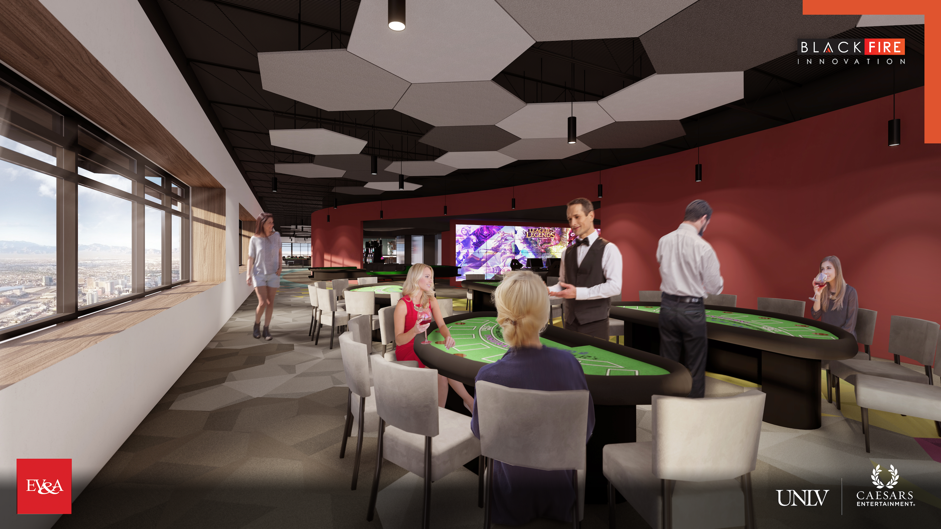 As the flagship tenant in UNLV’s Harry Reid Research & Technology Park in Las Vegas, Black Fire Innovation is a 43,000 square-foot innovation space that operates as an academic incubator, offering opportunities for students, entrepreneurs, and private industry partners who want to advance their research and test concepts. The collaborative space gives researchers unparalleled access to conduct on-demand testing of new ideas and products inside a replica integrated resort with a casino floor, mock hotel rooms, commercial kitchens capabilities, an esports arena and virtual reality facilities. UNLV’s Division of Research and Economic Development and Caesars Entertainment also occupy the space, advancing work that’s at the forefront of new customer experiences across the integrated resort ecosystem including hospitality, retail, entertainment, and associated verticals. The master-planned UNLV Harry Reid Research & Technology Park is a partnership among UNLV, the UNLV Research Foundation, and Gardner Company – and will serve as a catalyst to unite business, research and technology and advance economic development efforts throughout Southern Nevada. Learn more at blackfireinnovation.com.