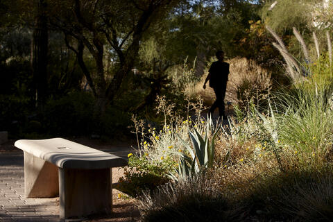 Nestled in the center of campus is a peaceful retreat for visitors. The garden's plants are a showcase for the beauty that thrives in arid climates.