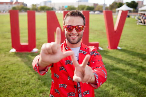 The two-time alumnus and now doctoral student helps show prospective Rebels everything UNLV has to offer as assistant director for visitor experience and engagement.