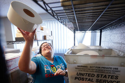 Service Learning and Leadership office's Anabel Chavva helping HOPE Scholars, still on campus, adjust to a new way of living.