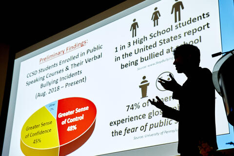 Master's student Henry Castillo turns personal experiences into research to help others feel empowered through public speaking.