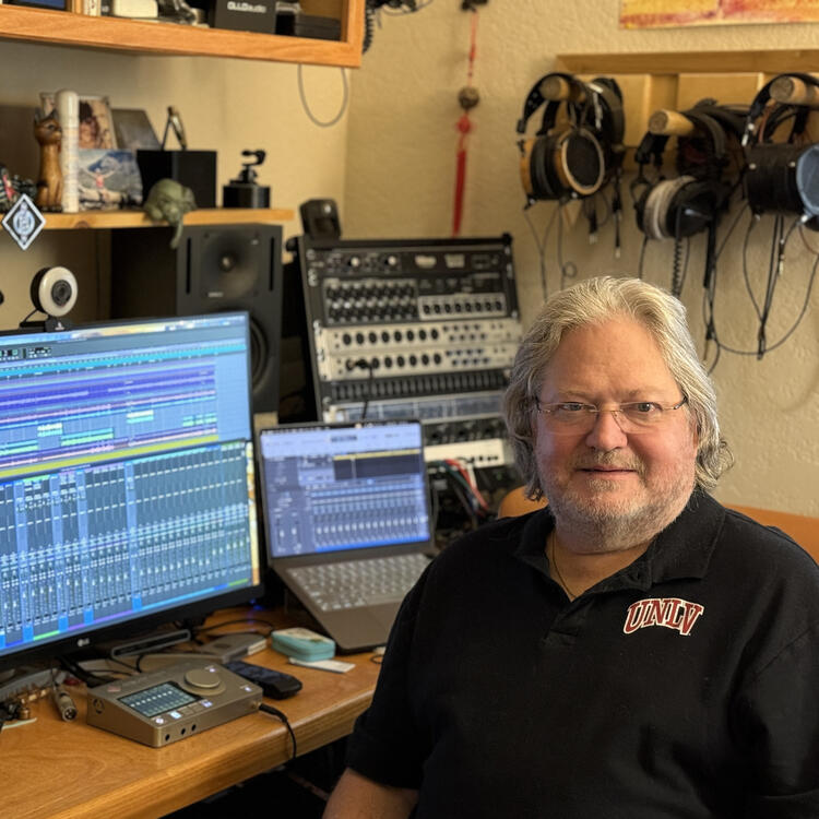 Gil Kaupp has been a faculty member at UNLV for more than 20 years, teaching both jazz trumpet and music technology, where he has earned the dean’s medal for outstanding contributions to the Las Vegas community. Together with professor Chuck Foley, he designed and continually updated the curriculum to teach students the art of recording, mixing, mastering and as of late, immersive and Dolby Atmos technology.
